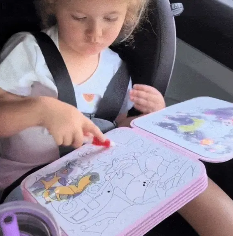 Fill the water pen with plain water, twist it closed, and paint over the page—colors appear instantly. Let the page dry for 5–10 minutes and the colors fade back, so kids can paint again and again. Tip: dab the pen if it’s too wet and avoid pressing hard on the pages.
