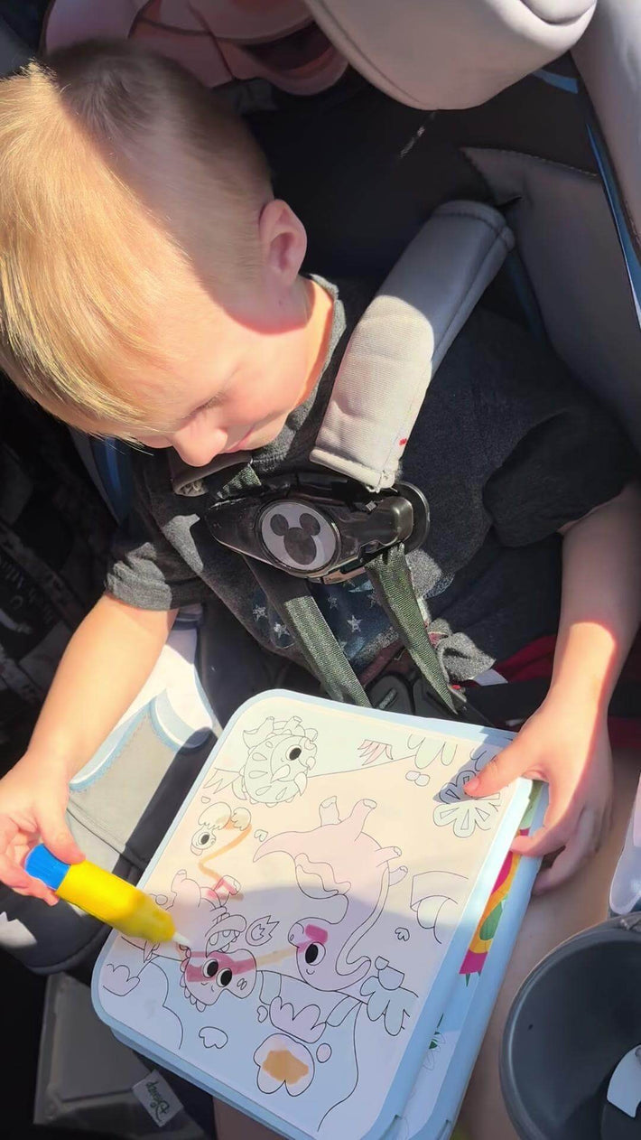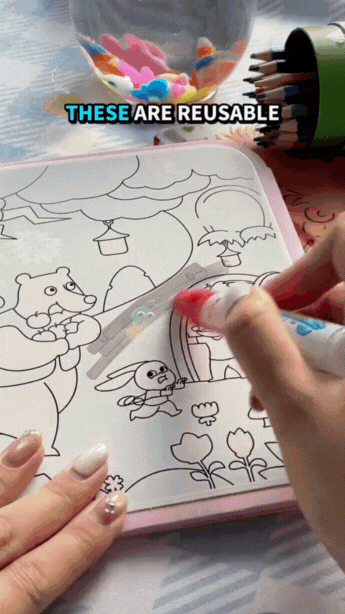 Fill the water pen with plain water, twist it closed, and paint over the page—colors appear instantly. Let the page dry for 5–10 minutes and the colors fade back, so kids can paint again and again. Tip: dab the pen if it’s too wet and avoid pressing hard on the pages.